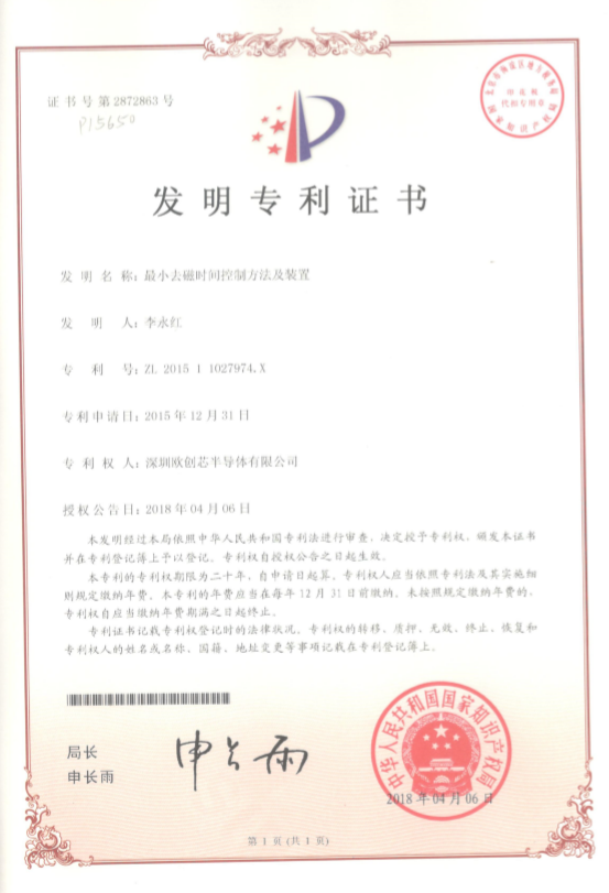 最小去磁時間控制方法及裝置(發(fā)明專利證書)