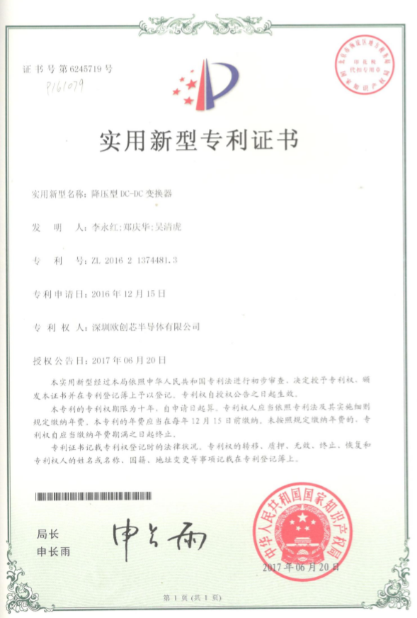 降壓型DC-DC變換器(實(shí)用新型證書)