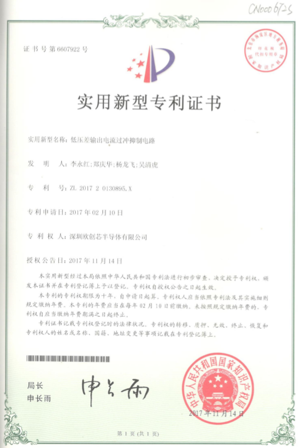 低壓差輸出電流過(guò)沖抑制電路(實(shí)用新型證書)