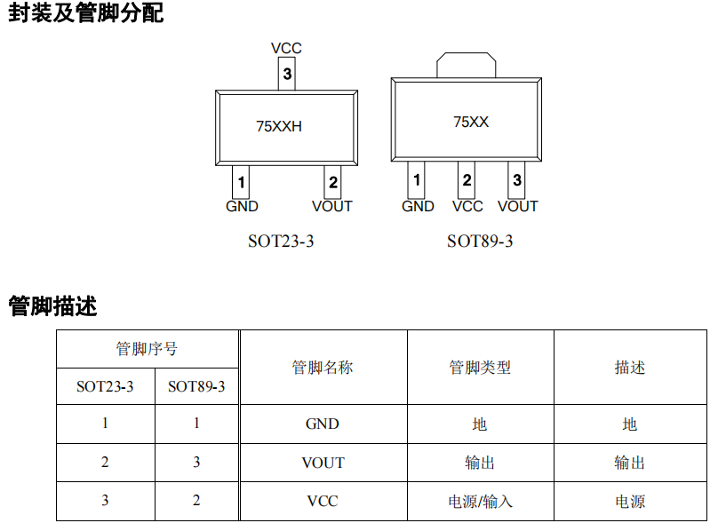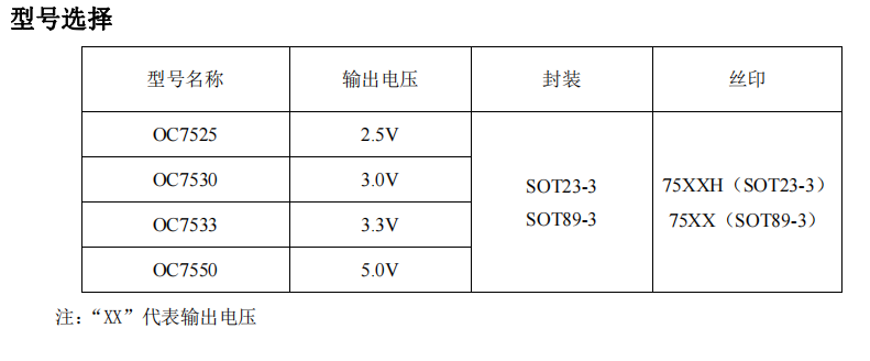 OC75XX 采用 SOT23-3 和 SOT89-3 封裝。